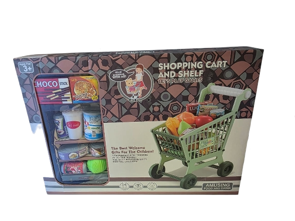 Faites découvrir à votre enfant le plaisir de faire les courses avec ce set complet Shopping Cart & Shelf ! Ce jouet comprend un chariot de supermarché réaliste accompagné d’une étagère de rangement avec des aliments factices (fruits, légumes, boîtes, bouteilles…).